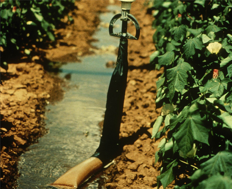 前面的文章提到過艾瑞德最新改進(jìn)的移動(dòng)式滴灌系統(tǒng)是一個(gè)方面,不在贅述,有興趣的朋友可以參考《艾瑞德向您推薦一種移動(dòng)式滴灌系統(tǒng)》一文進(jìn)行了解,這里主要介紹新的方法,LEPA (Low Energy Precision Application),中文翻譯過來叫低能耗精準(zhǔn)噴灑,通過使用3/4”橡膠軟管牽引。水是直接進(jìn)入犁溝—基本上可以進(jìn)入每個(gè)犁溝,一般安裝在地面以上0.3-0.45米。它有很多形式。一種將出水口直接沉積到溝中,并將水分散在狹窄的種植溝中,避免弄濕枝葉,主要針對(duì)棉花作物; 另一個(gè)將水倒流成一個(gè)寬敞的圓屋頂形狀,在沒有噴灑的情況下輕輕地分配水。