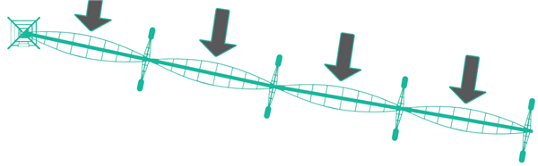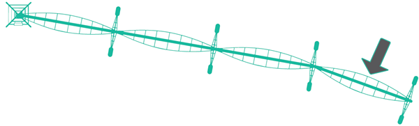5.設(shè)備最后一、二、三跨體運(yùn)行到和倒數(shù)第四跨體產(chǎn)生行程角度時(shí),第四跨體也開始運(yùn)行,此時(shí),整個(gè)設(shè)備形成一條直線運(yùn)行: