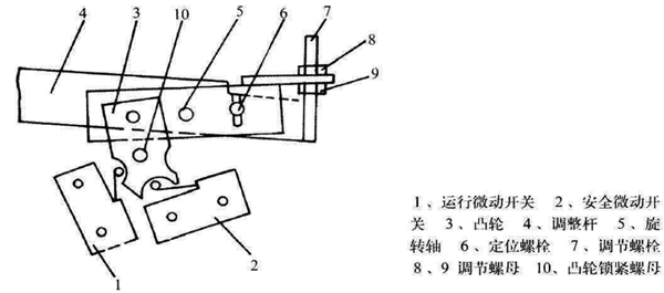 塔盒安裝在各塔架車的上部,其內(nèi)部安裝有同步控制角調(diào)節(jié)裝置、運(yùn)行微動開關(guān)、安全微動開關(guān)、交流接觸器。同步控制角調(diào)節(jié)裝置由調(diào)節(jié)桿和凸輪機(jī)構(gòu)組成。當(dāng)某一塔架車兩側(cè)桁架之間的夾角達(dá)到該角度時(shí),運(yùn)行微動開關(guān)常開觸點(diǎn)閉合,通過交流接觸器接通電動機(jī)的電源,該塔架車開始行走。當(dāng)該塔架車兩側(cè)的桁架成一直線時(shí),運(yùn)行微動開關(guān)常開觸點(diǎn)斷開,電動機(jī)的電源被切斷,塔架車停止行走。各個(gè)塔架車均按此調(diào)整并運(yùn)行,就保證了噴灌機(jī)的同步性。