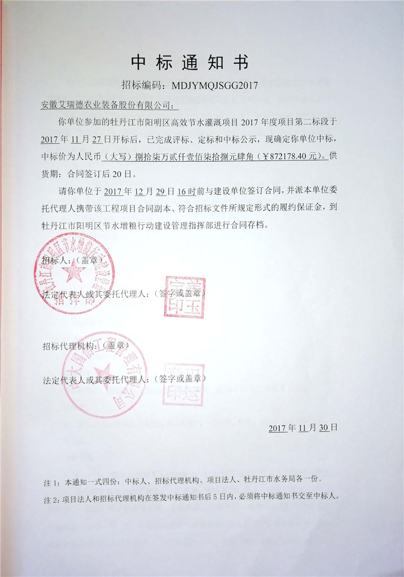 牡丹江陽(yáng)明區(qū)高效節(jié)水灌溉項(xiàng)目2017年度項(xiàng)目(二標(biāo)段)