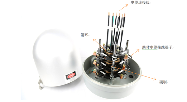 指針式噴灌機(jī)中心點(diǎn)是固定不動(dòng)的,跨體圍繞中心點(diǎn)轉(zhuǎn)圈,如果沒(méi)有集電環(huán),跨體電纜勢(shì)必會(huì)出現(xiàn)纏繞,最終導(dǎo)致設(shè)備無(wú)法運(yùn)行。集電環(huán)其實(shí)就是固定滑環(huán),外層是碳刷,中心軸安裝在噴灌機(jī)中心點(diǎn)上方,設(shè)備運(yùn)行時(shí),中心滑環(huán)和中心點(diǎn)不動(dòng),外層碳刷圍繞滑環(huán)運(yùn)動(dòng)。電纜通過(guò)中心孔接線到滑環(huán)線上,跨體線纜連接碳刷端子,這樣滑環(huán)就可以不斷的給設(shè)備供電了。