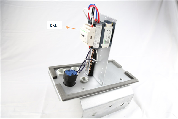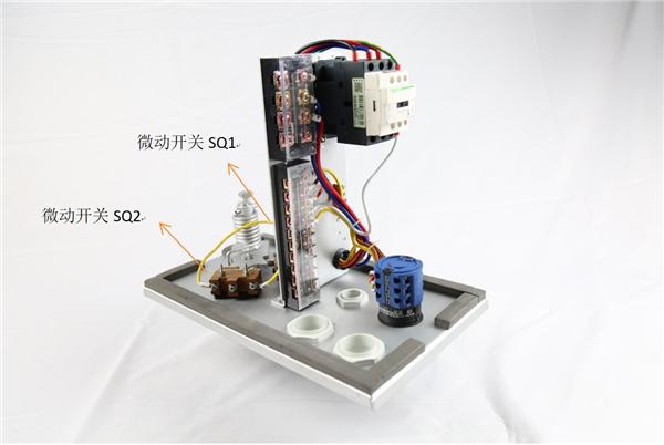 前面提到,設(shè)備總是由最后一跨先走,末端塔盒就是安裝于設(shè)備尾跨上方控制最后這一跨行走的塔盒。當(dāng)電控柜發(fā)出行走信號(hào)時(shí),末端塔盒最先響應(yīng),通過(guò)控制接觸器來(lái)控制最后一跨的行走電機(jī),從而帶動(dòng)整個(gè)跨體行走,末端塔盒不控制行走電機(jī)的方向,反向由電控柜通過(guò)控制相序來(lái)控制。