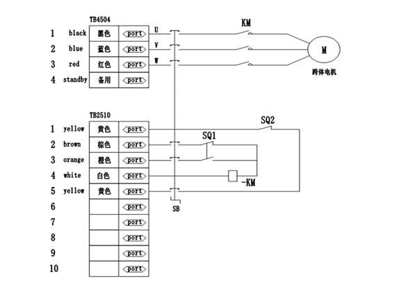 電源從如圖1、2、3號(hào)端子進(jìn)入,經(jīng)過(guò)跨體運(yùn)行接觸器KM,KM出線去控制跨體電機(jī)M。