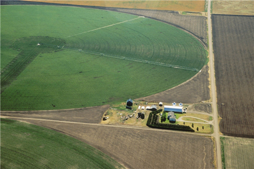 從高空往下看,美國噴灌機澆灌出來的土地像極了大餅子,在噴灌機相對集中的內(nèi)布拉斯加州、堪薩斯州、科羅拉多州等地方,噴灌圈密密麻麻的有序分布著。